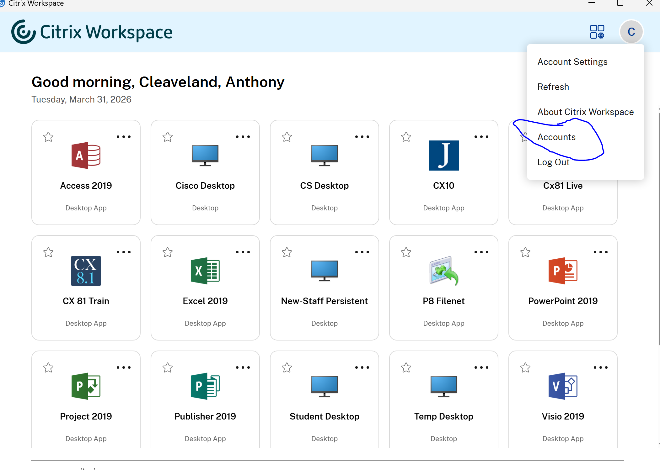 Citrix.park.edu may not redirect to the new Parkuniv.cloud.com inside citrix workspace so this guide will show you how to manually point to the new URL: