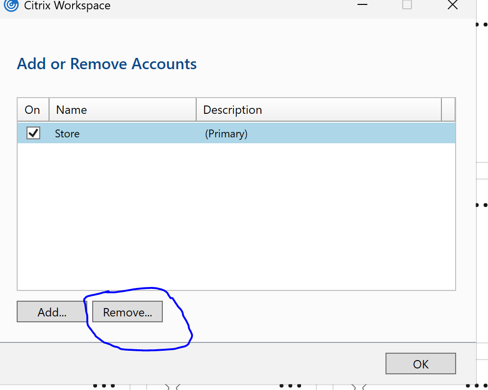 2. Click on remove to get rid of the saved old URL of citrix.park.edu